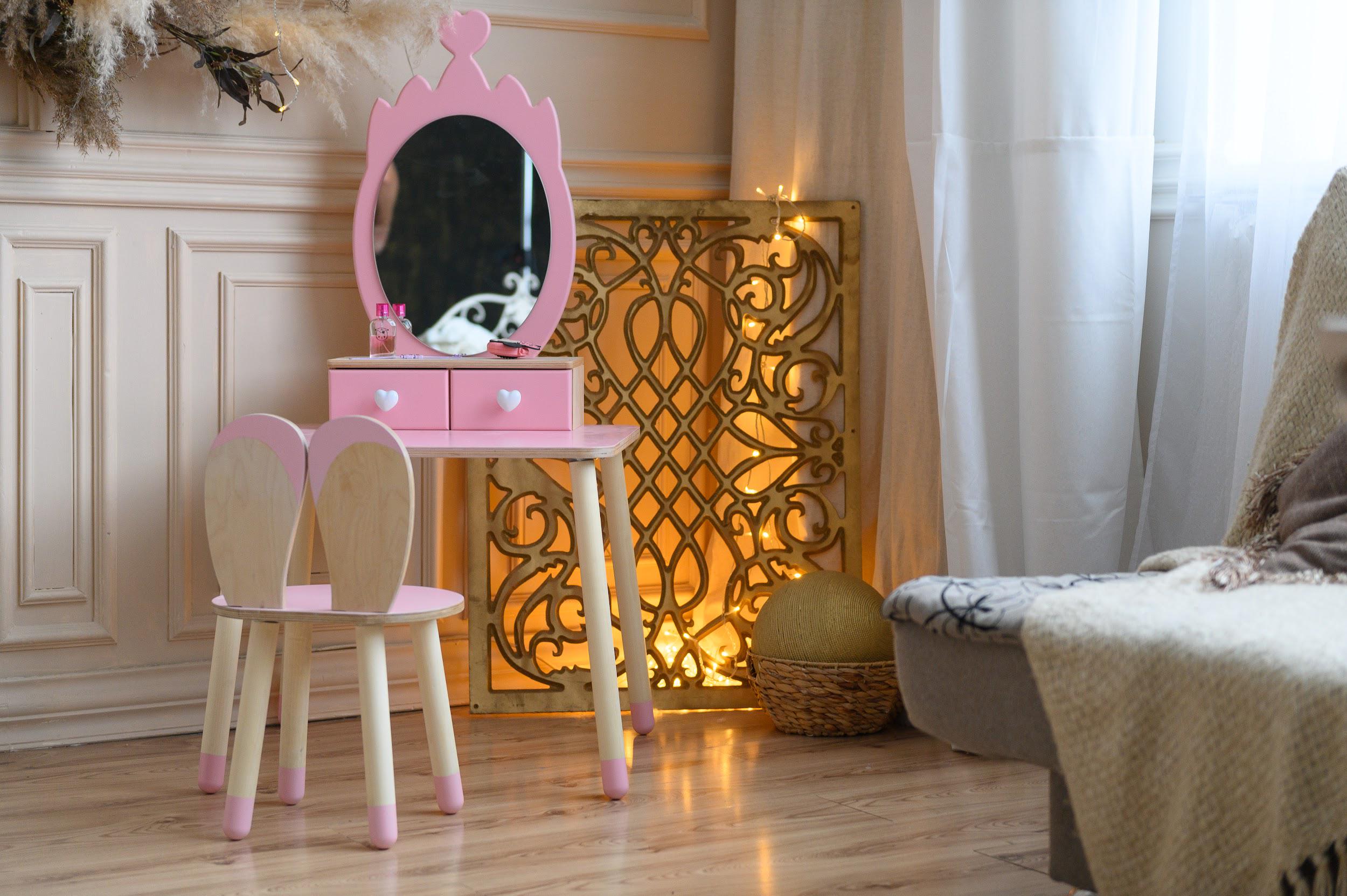 Elegant & Stylish Design: A beautifully crafted vanity set that enhances any bedroom or playroom décor.